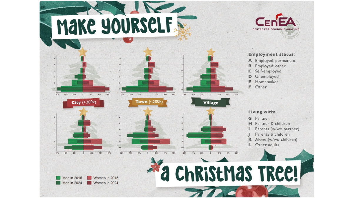 In our forthcoming report on young adults in Poland we explore long-term trends in material conditions, co-residence, and family choices. Our data-driven Christmas trees are created using